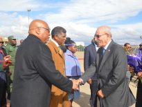وفي المطار تم توديع الرئيس الصحراوي والوفد المرافق له من طرف نائبة الوزير الأول ووزيرة العلاقات الدولية والتعاون السيدة نينتومبو ناندي ندايتوا ووزير الدفاع السيد بيندا ياندوكولو والسفير الصحراوي اباه الديه الشيخ محمد.