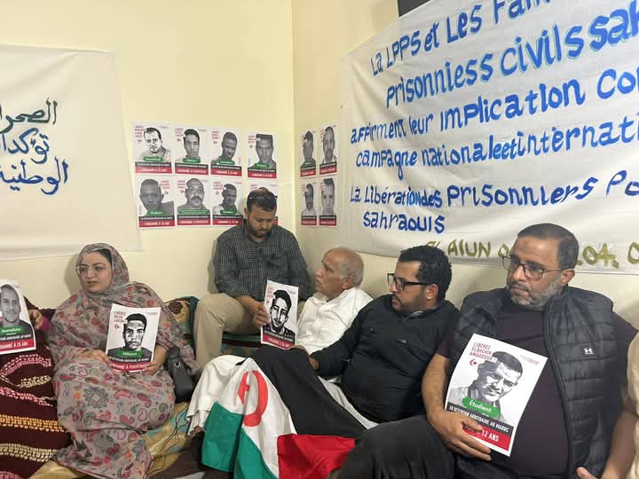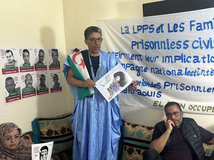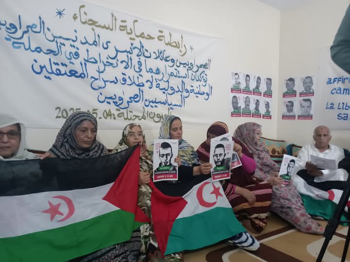 عقدت رابطة حماية السجناء الصحراويين بسجون الإحتلال المغربية، يوم الأحد 4 ماي 2025 بمدينة العيون المحتلة، تجمعا تضامنيا بمشاركة عائلات الأسرى المدنيين الصحراويين المعتقلين في السجون المغربية، وذلك انخراطا في الحملة الوطنية والدولية المطالبة بإطلاق سراحهم، وتثمينا لمسيرة الحرية التي انطلقت من فرنسا باتجاه المغرب و التي تقودها السيد كلود مونجان زوجة الأسير ” النعمة الاصفاري” لتسليط الضوء على معاناة الأسرى الصحراويين و الانتهاكات الجسيمة التي يتعرضون لها خلف القضبان بالسجون المغربية .