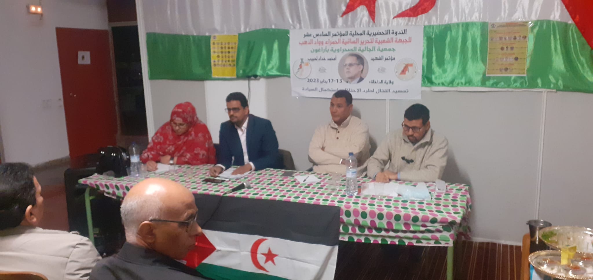 أشرف مبعوث اللجنة التحضيرية للمؤتمر السادس عشر لجبهة البوليساريو الأخ “عبد الله سويلم” أمس الجمعة 02 ديسمبر 2022 على تأطير ندوة سياسية تحضيرية للمؤتمر الشعبي العام مؤتمر الشهيد *”أمحمد خداد لحبيب”* والذي سينعقد بولاية الداخلة تحت شعار *”تصعيد القتال لطرد الإحتلال وإستكمال السيادة”*